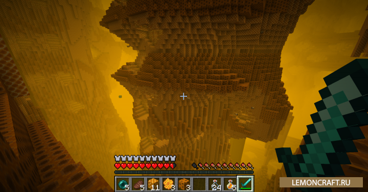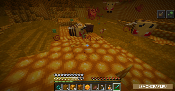 Мод на пчелиное измерение The Bumblezone добавляет в игру новое измерение, которое позволит попасть вам внутрь пчелиного улья и исследовать его. Само измерение состоит из сот, блоков меда и пористых блоков. Исследую данный мир вы должны быть очень осторожны, ведь пчелы, которые собирают там мед, очень опасны. Перейдя в новое измерение вы будете перемещаться так же, как и в нижнем мире, один блок нового измерения будет равен 10 блокам в реальном мире.